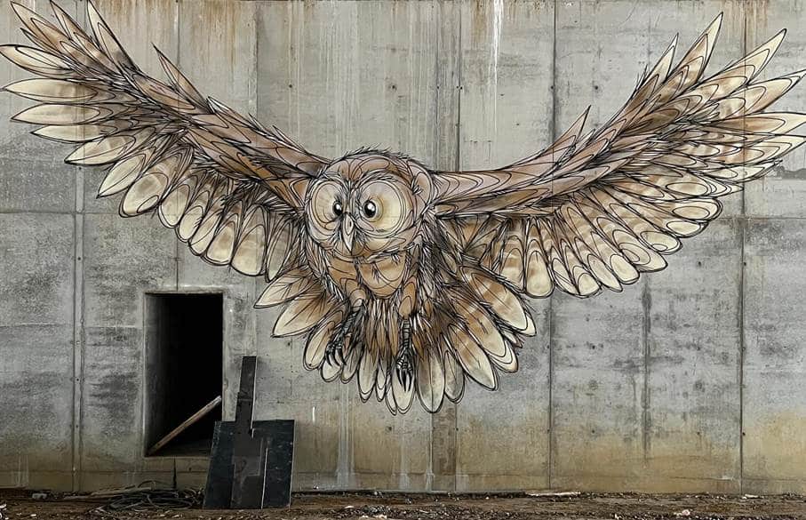 Car il y a, dans le travail de Dzia, quelque chose de cet ordre-là : une présence inattendue, qui vient troubler le regard. Un renard là où l’on n’attend que du béton. Un oiseau dessiné à même la ville. Une silhouette animale qui semble à la fois surgir du mur… et s’y fondre.