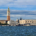 La vieille ville est reconnaissable à ses quatre clochers qui émergent au dessus des toits et se découpent sur le bleu turquoise de la mer, les reliefs lointains et les avancées boisées plus proches.