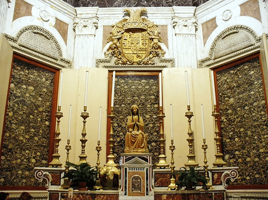 Mais ce qui m’a le plus sidéré, c’est la chapelle des Martyrs à droite du maître-autel : l’autel y est entouré de hautes vitrines sont remplies … des crânes des martyrs de 1480, 813 malheureux, massacrés et décapités par les Turcs !