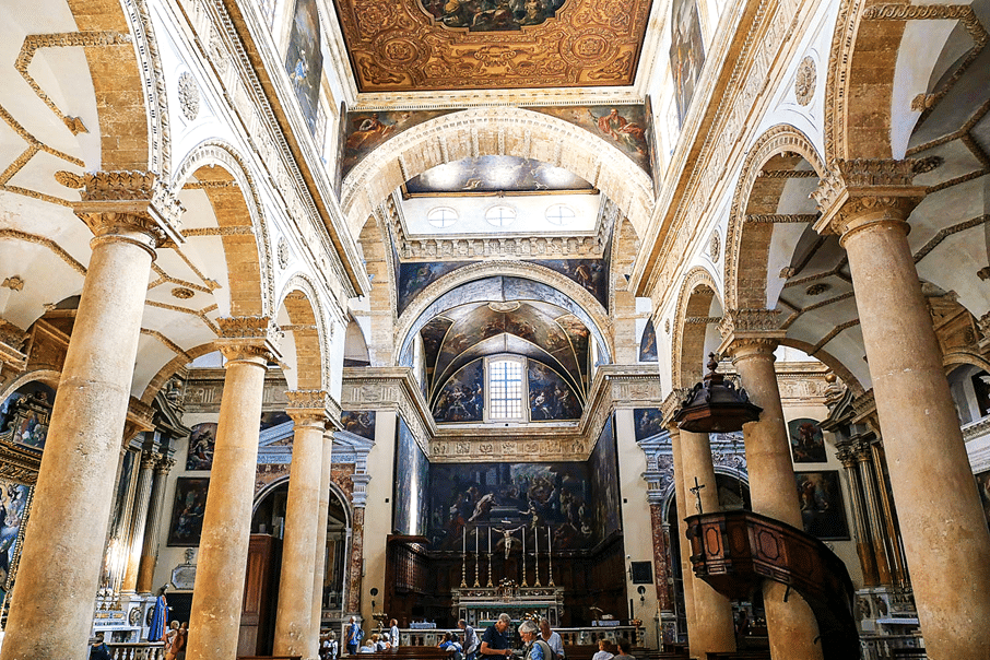 Nous découvrons un formidable ensemble de bâtiments baroques du XVIIe et XVIIIe siècle autour de la Piazza Duomo : la cathédrale, le Palazzo Arcivescovile (palais épiscopal) et le Palazzo del Seminario où se trouve le musée d’art sacré.