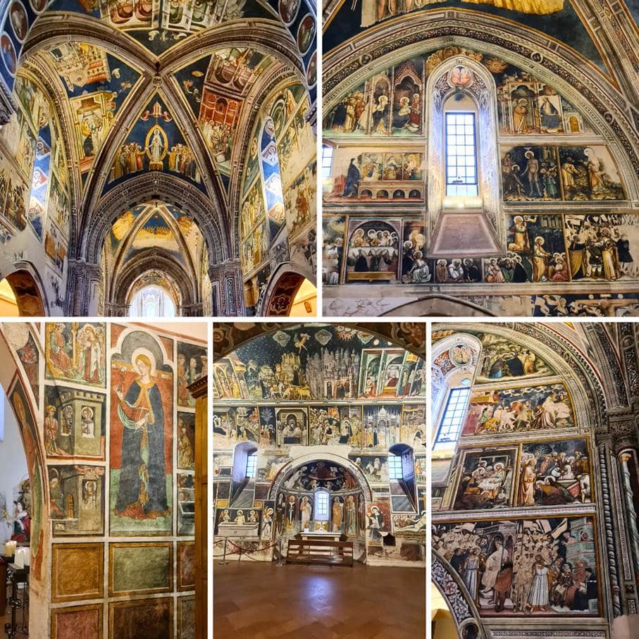 Cette basilique franciscaine du XIVe siècle, à la façade toute simple, se distingue par un fabuleux ensemble de fresques rappelant Giotto à Assise.