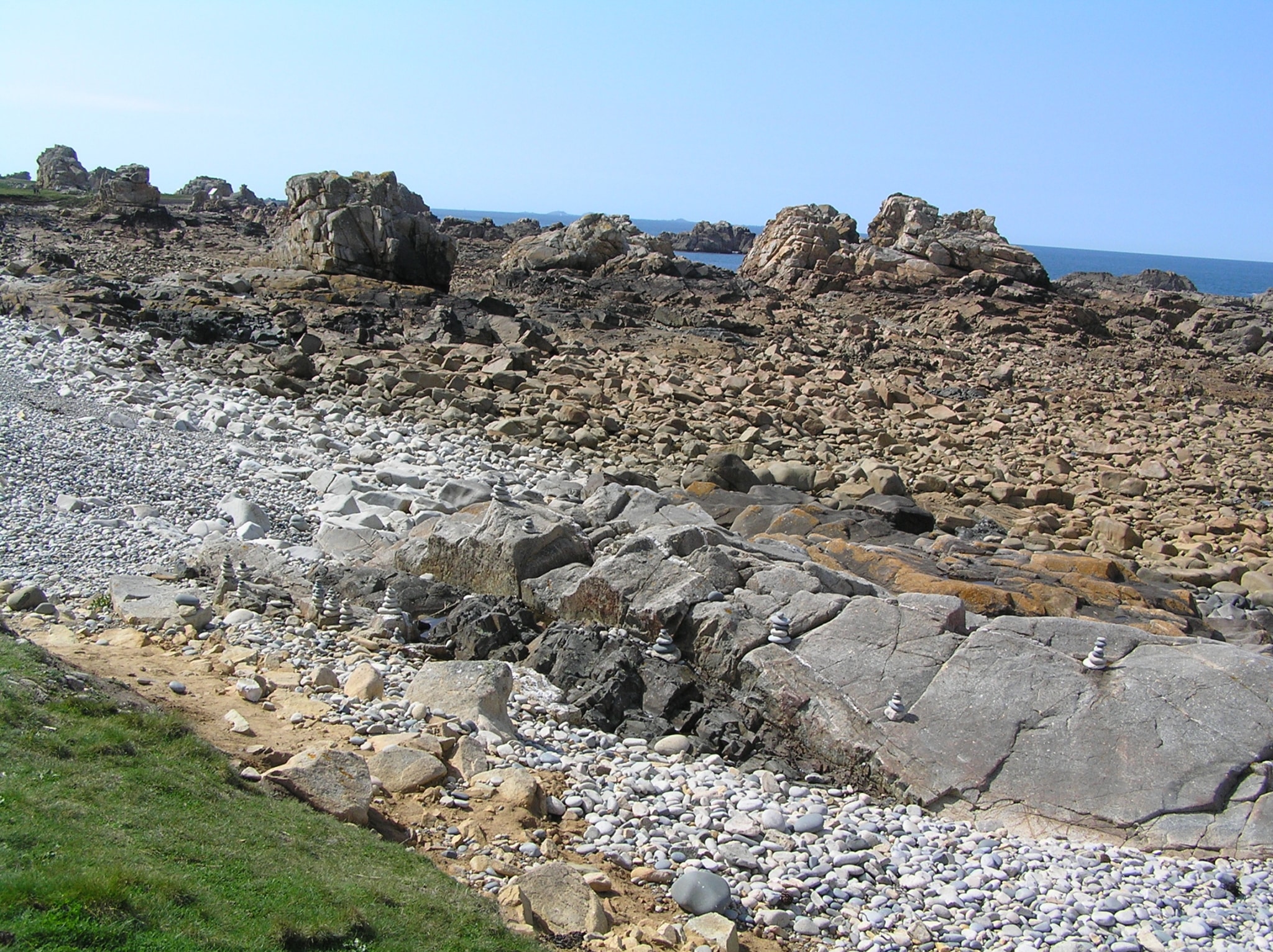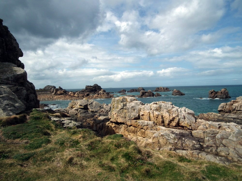 Chemin faisant, nous découvrons plusieurs « tors« , ces sentinelles minérales, dressées le long de la côte rocheuse. Le nom emprunté à la géomorphologie évoque les chaos granitiques typiques des côtes bretonnes, en équilibre parfois précaire, nés du travail de sape des marées.